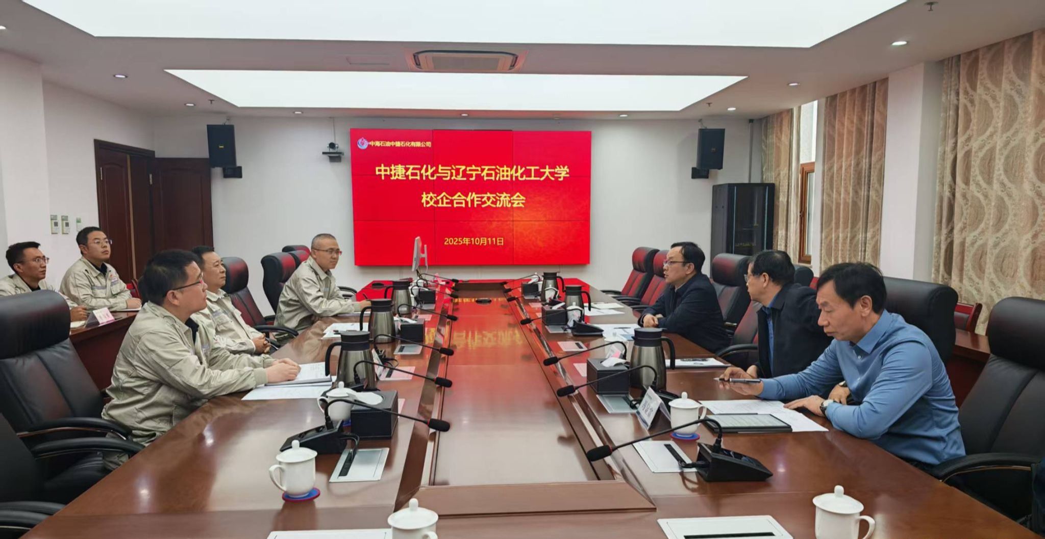 10月11日下午,在论坛交流结束后,刘坚带队前往中海石油中捷石化有限公司(以下简称 “中捷石化”)开展走访交流,并专程看望在此工作的学校化工专业96届优秀校友——中捷石化党委书记、总经理邵为谠。公司党委书记、总经理邵为谠,副总经理王书来,研究院院长任志刚及企业相关部门负责人热情接待了刘坚一行。